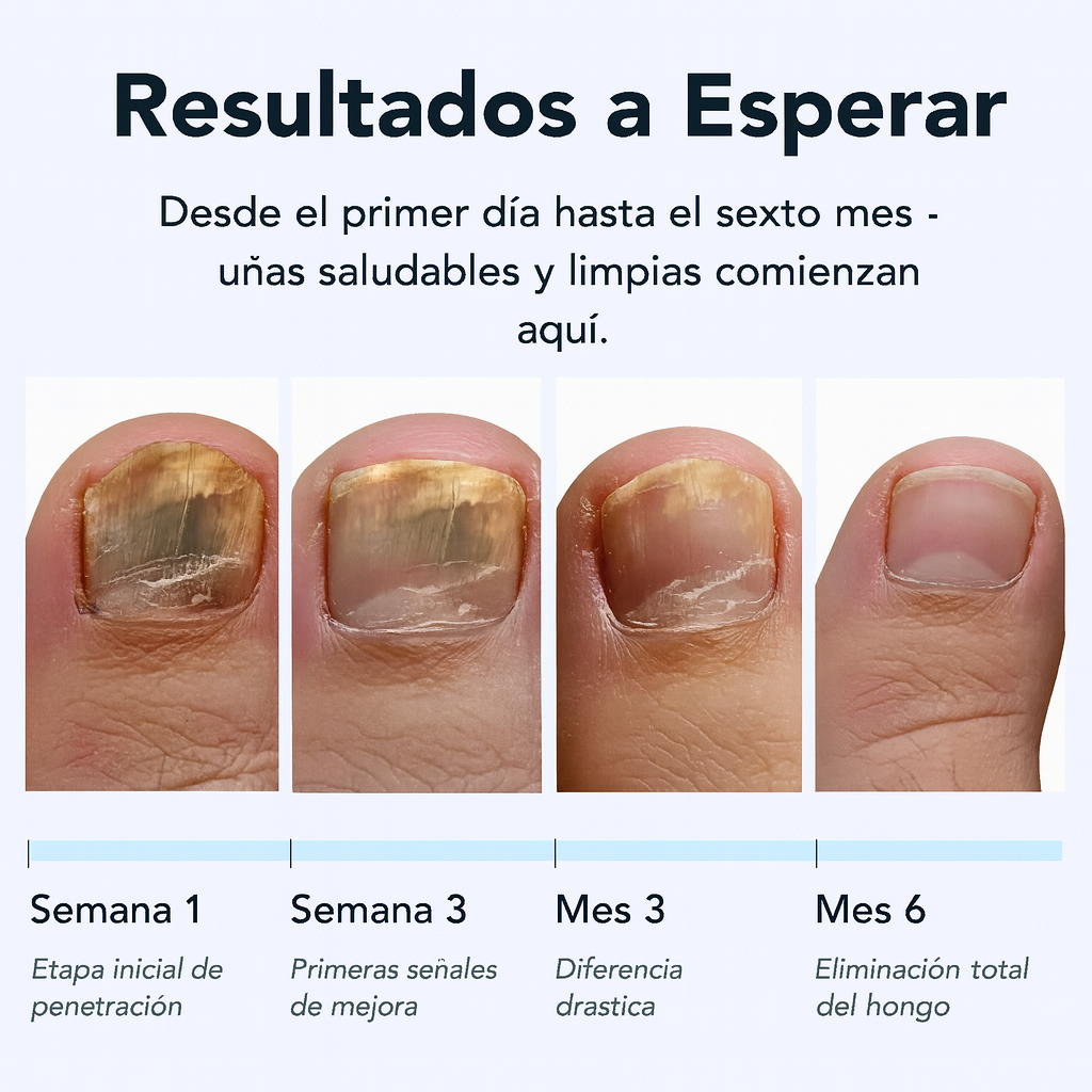 Con un uso constante, notarás cambios visibles desde la primera semana y en seis meses disfrutarás de uñas totalmente limpias, fuertes y saludables.